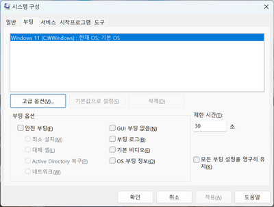 2. 부팅 탭의 고급 옵션으로 진입합니다.